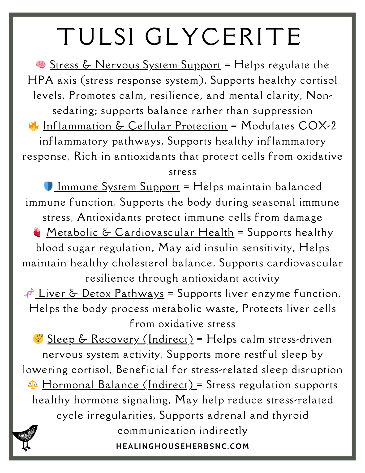 Our Tulsi is locally grown in North Carolina and extracted in vegetable glycerin over 6+ weeks for maximum potency. This gentle, alcohol-free formula delivers the full spectrum of Tulsi's adaptogenic, anti-inflammatory, and immune-supporting benefits.